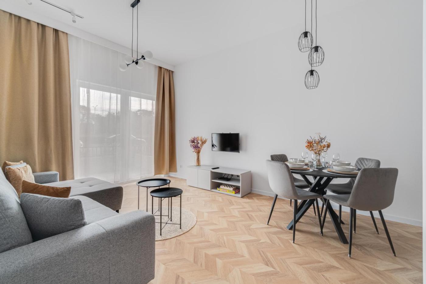 Apartament z 1 sypialnią. This apartment comes with 1 living room, 1 separate bedroom and 1 bathroom with a shower and a hairdryer. Guests can make meals in the kitchen that features a stovetop, a refrigerator, a dishwasher and kitchenware. Boasting a terrace, this apartment also features a washing machine, a dining area and a flat-screen TV. The unit has 2 beds. Apartament - 4 osobowy. Powierzchnia pokoju ok.: 47 mkw.